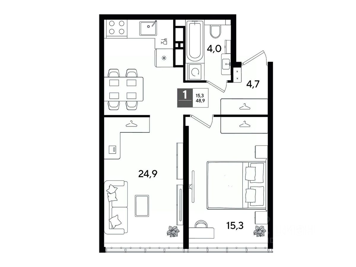 В продаже 1-комнатная квартира от застройщика! Мкр. "DOGMA PARK" г. Краснодар, Литер 24 Срок сдачи: 4 кв. 2027, общей площадью 48.9 кв.м., на 16 этаже.