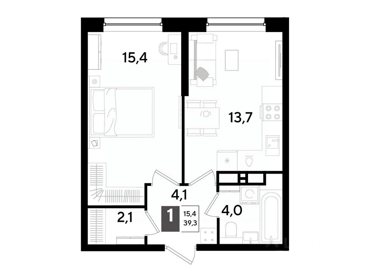 В продаже 1-комнатная квартира от застройщика! Мкр. "DOGMA PARK" г. Краснодар, Литер 34 Срок сдачи: 4 кв. 2027, общей площадью 39.3 кв.м., на 16 этаже.
