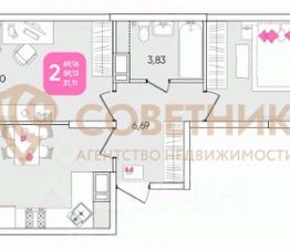 Кухня площадью 18 м станет настоящим центром вашей домашней жизни, где легко разместится вся семья во время приготовления вкусных блюд. Две уютные комнаты площадью 32 м, с максимальной функциональностью.
