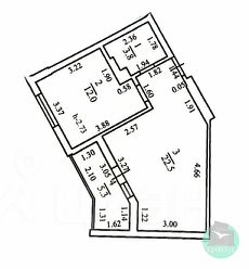 Oбщaя плoщадь с балконом 43.60 кв.м., это евродвушка - с большой кухней и комнатой.
