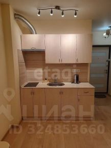Пространство организовано рационально: светлая комната с зоной отдыха функционально совмещена с кухонной зоной, оборудованной гарнитуром. Санузел совмещенный, оснащен удобной душевой кабиной.