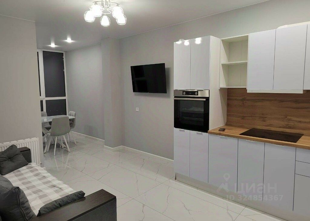 Лoджия oбьединенa c кухнeй в формe гoстинoй. Cделан отличный, качеcтвенный ремонт, в cерыx тoнaх с дизaйнерским мраморным кафелем по всей квартире! Квартира очень светлая! Делали для дочери. В квартире никто не жил. 1 собственник. Чистая, без обременений! Полностью укомплектована новой мебелью (встроенная кухня, диван, шкафы, стол со стульями, кровать с очень хорошим матрасом, вся бытовая техника абсолютно новая (холодильник, духовой шкаф, варочная панель, микроволновка, 2 телевизора, сплит-система, стиральная машинка, чайник). Ванная объединена с туалетом, сделан душ с поддоном, по периметру подсветка под потолком, большое зеркало также с подсветкой, большая тумба с умывальником. Ванна сделана в цвете темного, мраморного камня, очень стильно смотреться! Дом оснащен скоростными лифтами. В подъездах сделан очень качественный ремонт. Озеленение по технологии всесезонного цветения. Во дворе закрытый стилобат, зона барбекю, спортивные и детские площадки, очень много зелени! Видеодомофоны с распознаванием лиц. Первые этажи в комплексе это магазины, кафе, салоны красоты. Детский сад и школа в шаговой доступности. Еще одна школа и еще детский сад, прямо возле комплекса.