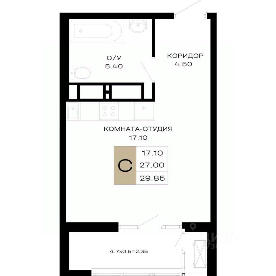 Общая площадь29,85 м²