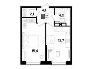 В продаже 1-комнатная квартира от застройщика! Мкр. "DOGMA PARK" г. Краснодар, Литер 33 Срок сдачи: 3 кв. 2027, общей площадью 39.3 кв.м., на 11 этаже.