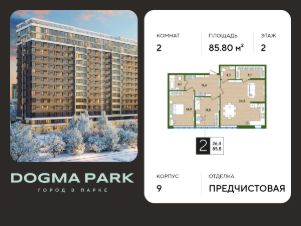 В продаже 2-комнатная квартира от застройщика! Мкр. "ДОГМА ПАРК" г. Краснодар, Литер 9 Срок сдачи: 2 кв. 2027, общей площадью 85.80 кв.м., на 2 этаже.