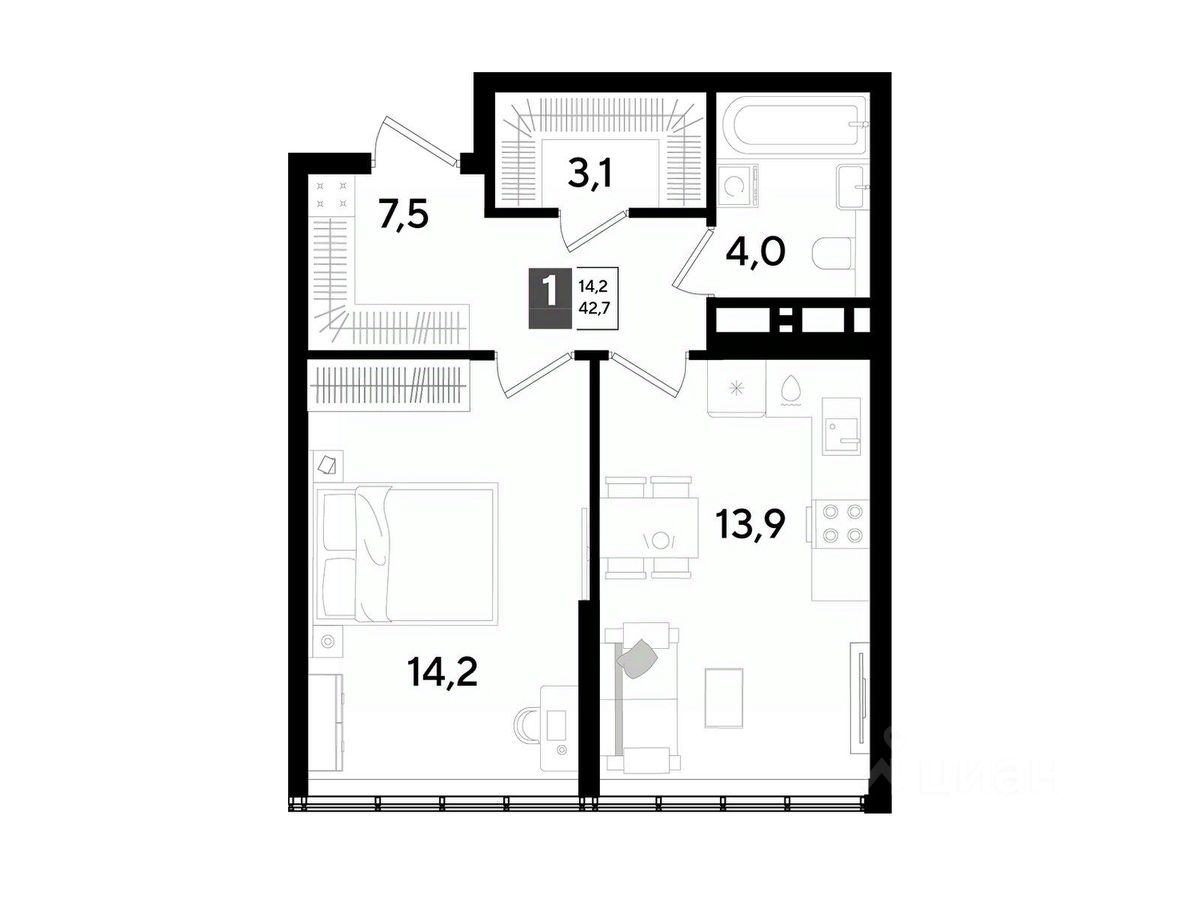 В продаже 1-комнатная квартира от застройщика! Мкр. "DOGMA PARK" г. Краснодар, Литер 32 Срок сдачи: 3 кв. 2027, общей площадью 42.7 кв.м., на 11 этаже.