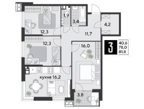 Срок сдачи: 1 кв. 2026, общей площадью 81.8 кв.м., на 8 этаже.