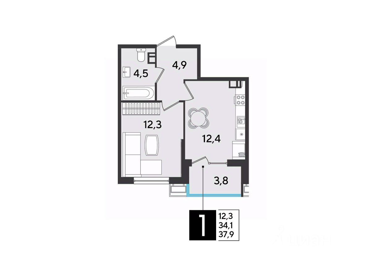 Срок сдачи: 2 кв. 2026, общей площадью 37.9 кв.м., на 6 этаже.