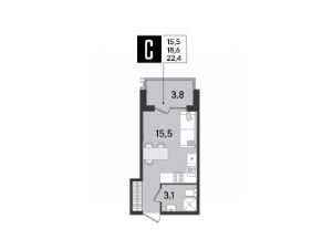 Срок сдачи: 2 кв. 2026, общей площадью 22.4 кв.м., на 2 этаже.