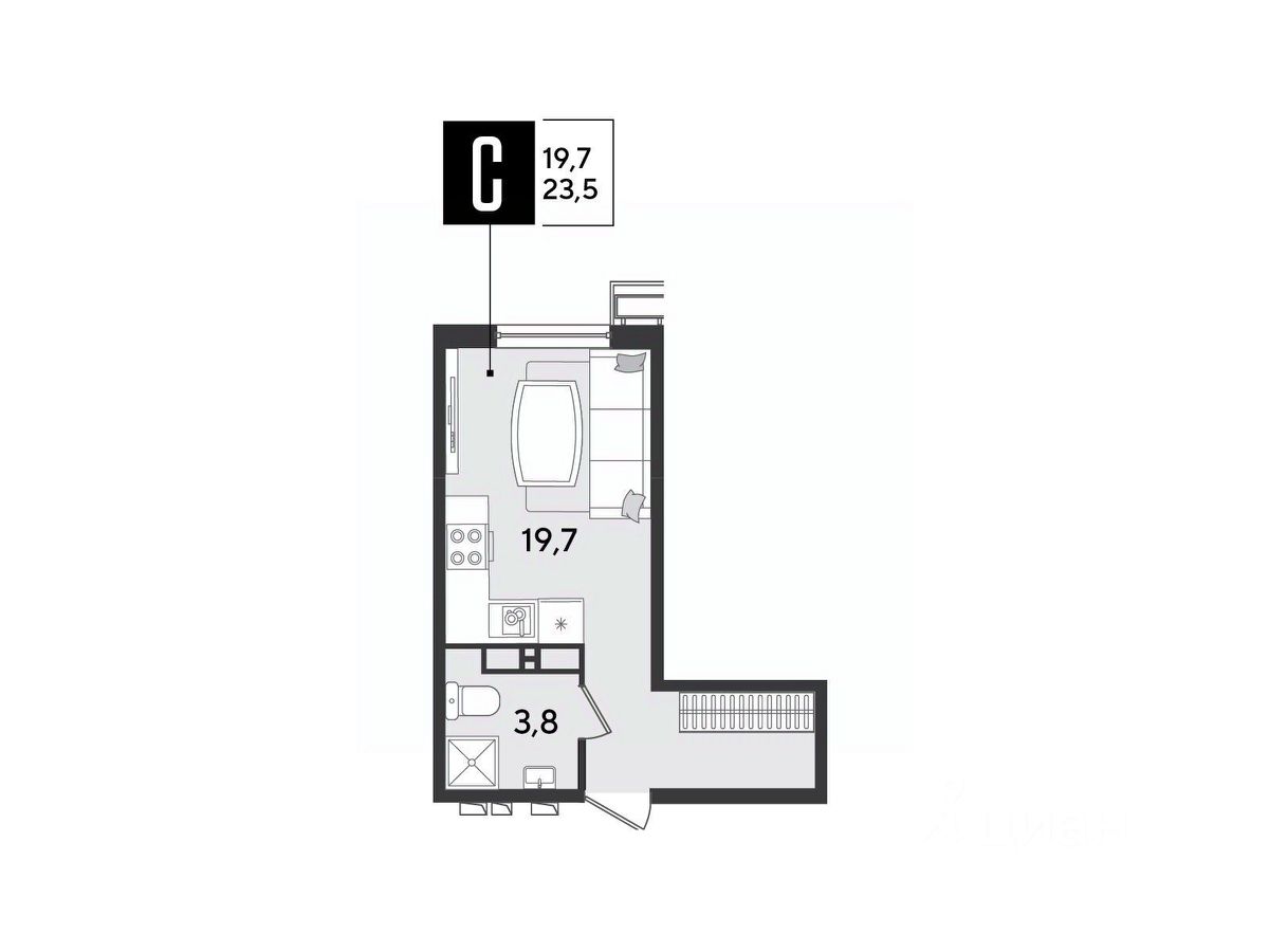 Срок сдачи: 2 кв. 2026, общей площадью 23.5 кв.м., на 12 этаже.