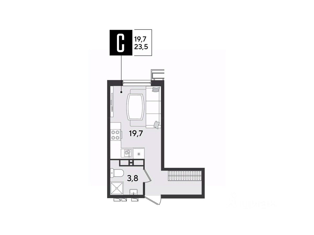 Срок сдачи: 2 кв. 2026, общей площадью 23.5 кв.м., на 11 этаже.