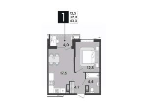 Срок сдачи: 2 кв. 2026, общей площадью 43 кв.м., на 12 этаже.
