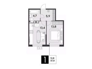 Срок сдачи: 2 кв. 2026, общей площадью 37.8 кв.м., на 6 этаже.