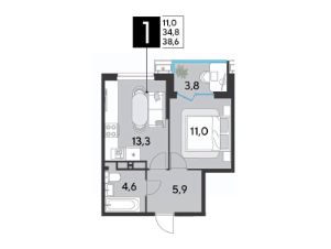 Срок сдачи: 2 кв. 2026, общей площадью 38.6 кв.м., на 12 этаже.