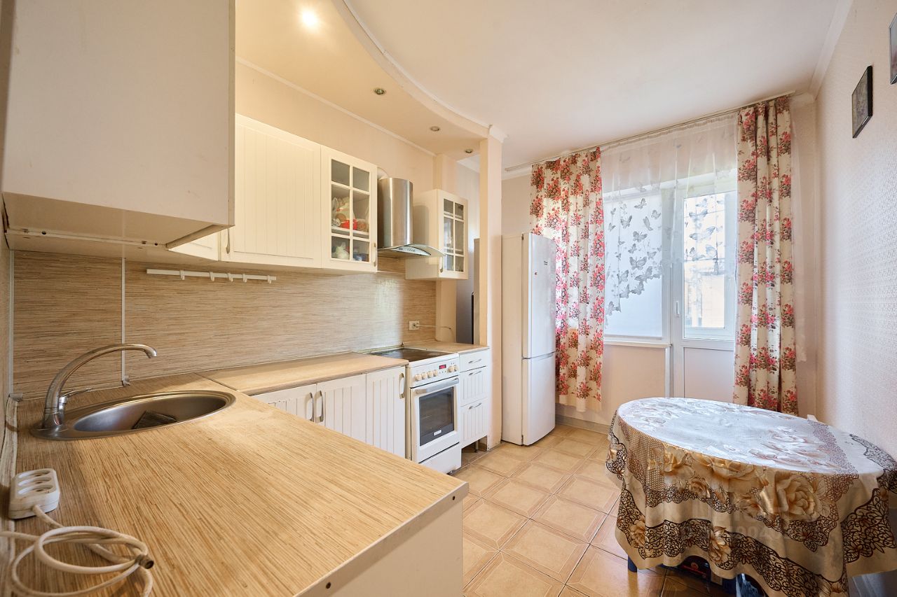 Коридор, кухня - плитка на полу, в комнатах хороший ламинат, качественные обои, в комнатах натяжные потолки (кроме кухни). Межкомнатные двери из массива дерева (Беларусь).