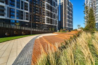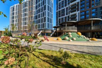 Зоны отдыха, спорта, детские площадки, амфитеатр.