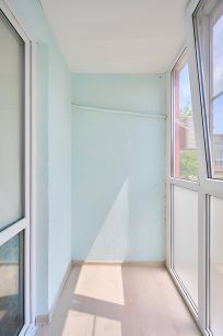 Особенностью квартиры является просторная планировка с выходом на застекленный балкон. Также предусмотрена ниша под гардероб, что позволит рационально использовать пространство.