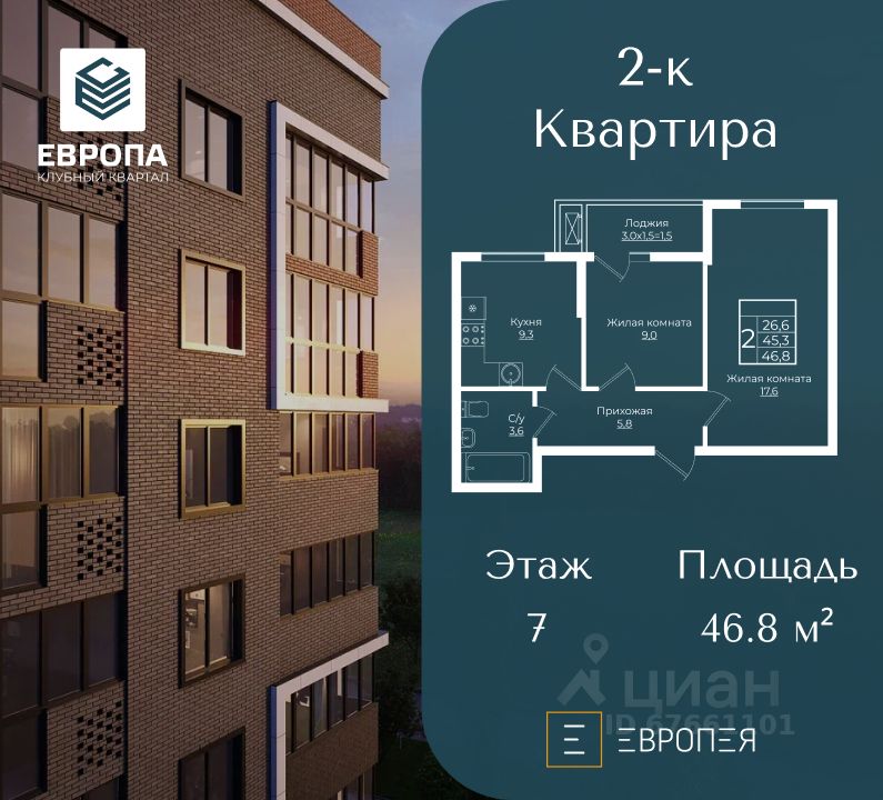 Клубный квартал Европа — уютный жилой район, гармонично сочетающий в себе яркие дизайнерские решения, прекрасную экологию и благоустроенные общественные пространства. Расположен в уникальной локации рядом с культовой "Немецкой Деревней". Всего за несколько минут вы сможете прогуляться до живописного Лебединого озера, площади с фонтаном и других знаковых мест этого уютного и развитого района. На территории квартала созданы все условия для комфортной жизни: развитая транспортная инфраструктура — как для владельцев автомобилей, так и для тех, кто предпочитает общественный транспорт. Внутри комплекса вас ждут современные детские и спортивные площадки, зоны отдыха и безопасные прогулочные маршруты. В районе установлена система видеонаблюдения, что гарантирует высокий уровень безопасности. Квартиры с смарт-планировками предоставляют полную свободу для воплощения ваших идей. Создайте пространство, отражающее ваш стиль и потребности, наслаждайтесь комфортом и индивидуальностью в каждом уголке вашей новой квартиры. Звоните прямо сейчас и станьте частью этого современного, безопасного и комфортабельного жилого квартала "Европа". Ваша новая квартира ждет именно вас! Стоимость является предварительной и может меняться в зависимости от выбранной ипотечной программы и дополнительных опций. Для уточнения стоимости необходимо обратиться в отдел продаж ГК "Европея".
