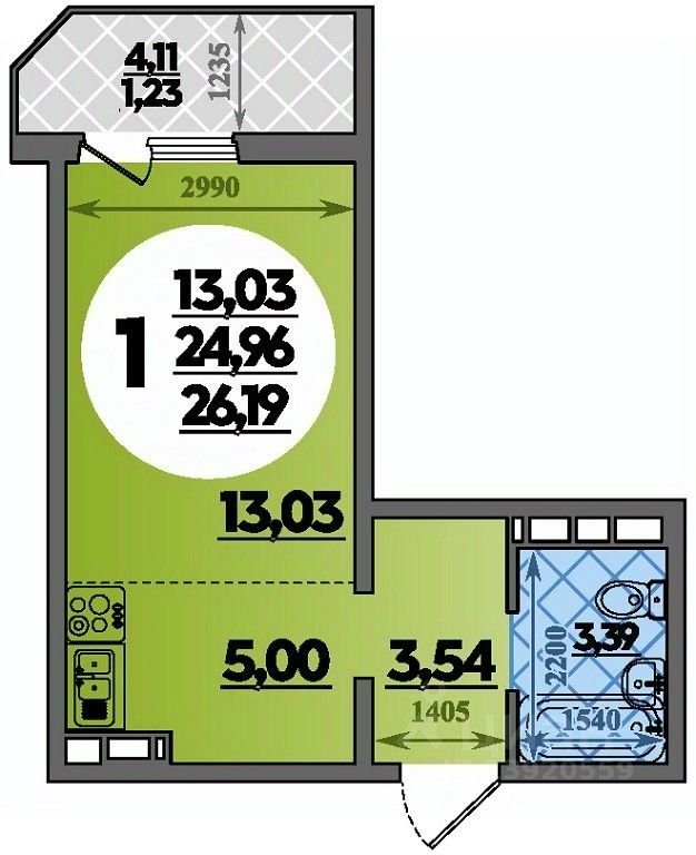 Продаётся студия в сданном доме (Литер 14), срок сдачи: I-кв. 2025, общей площадью 26.19 кв.м., на 2 этаже. РАСПОЛОЖЕНИЕ