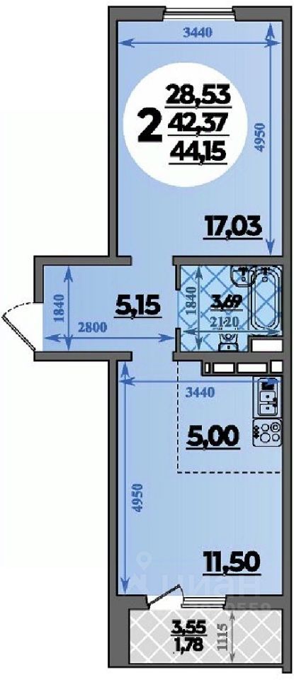 Продаётся 2-комнатная квартира в сданном доме (Литер 14), срок сдачи: I-кв. 2025, общей площадью 44.15 кв.м., на 2 этаже. РАСПОЛОЖЕНИЕ