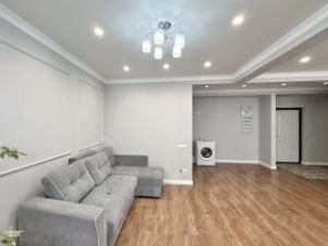 В квартире сделан дизайнерский ремонт из импортных материалов в теплых светлых тонах. На полу качественный ламинат с элементами теплого пола.