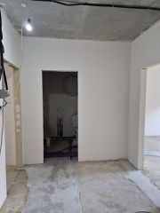 Полностью перештукатурены стены под маяк, отшпаклеваны под обои- идеальная геометрия стен,