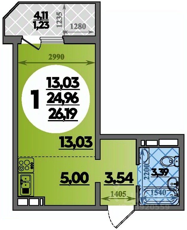 Продаётся студия в сданном доме (Литер 13 ), срок сдачи: I-кв. 2025, общей площадью 26.19 кв.м., на 6 этаже. РАСПОЛОЖЕНИЕ