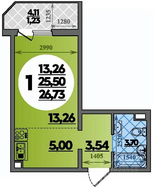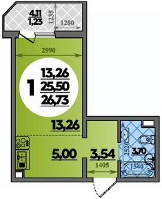 Продаётся студия в сданном доме (Литер 13 ), срок сдачи: I-кв. 2025, общей площадью 26.73 кв.м., на 1 этаже. РАСПОЛОЖЕНИЕ