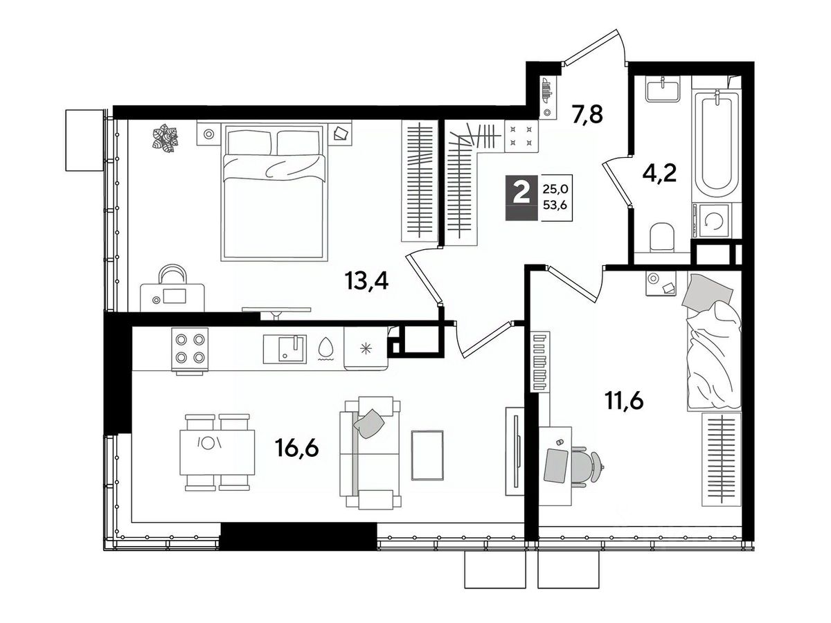 В продаже 2-комнатная квартира от застройщика! Мкр. "DOGMA PARK" г. Краснодар, Литер 30 Срок сдачи: 3 кв. 2027, общей площадью 53.6 кв.м., на 16 этаже.