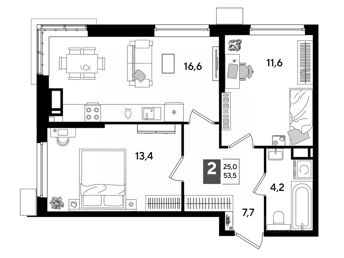 В продаже 2-комнатная квартира от застройщика! Мкр. "DOGMA PARK" г. Краснодар, Литер 31 Срок сдачи: 3 кв. 2027, общей площадью 53.5 кв.м., на 16 этаже.