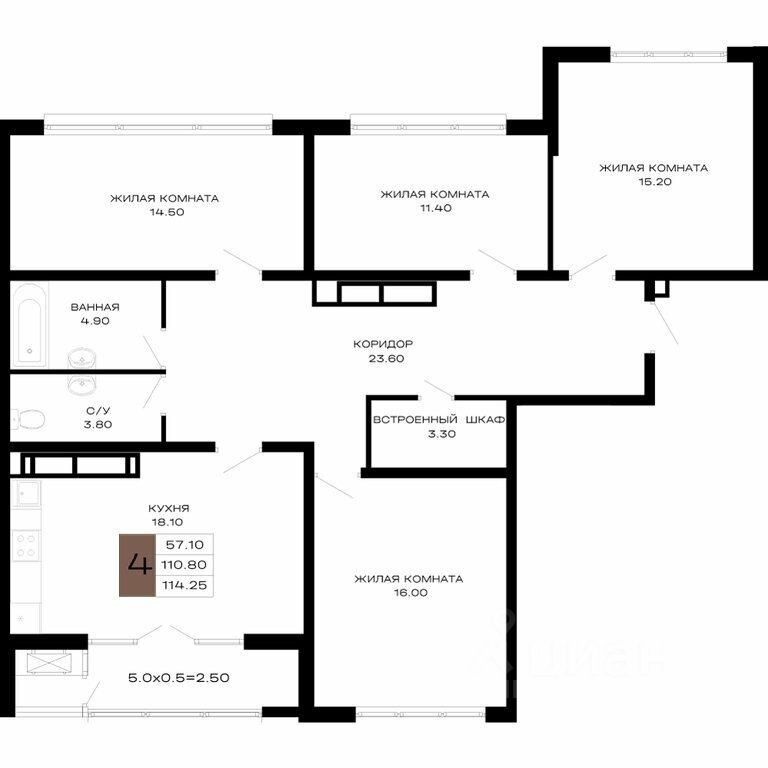 В продаже просторная 4-комнатная квартира в ЖК "Сердце!"