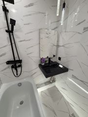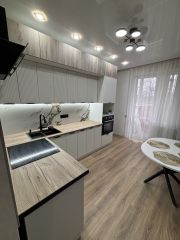 В квартире выполнен новый ремонт в светлых тонах. Хорошая планировка с комнатами правильной прямоугольной формы и просторной кухней. Имеется выделенная зоны под кухонный гарнитур и зону отдыха. Санузел совмещен, установлена новая качественная сантехника, выложен дорогой керамогранит.