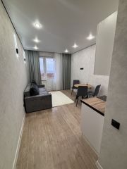 В квартире выполнен ремонт в светлых тонах. Хорошая планировка с комнатой правильной прямоугольной формы , где можно расположить для комфортного проживания всю необходимую мебель и технику. Санузел совмещен, установлена новая качественная сантехника. С комнаты есть выход на застекленную лоджию.