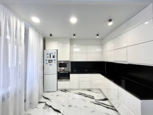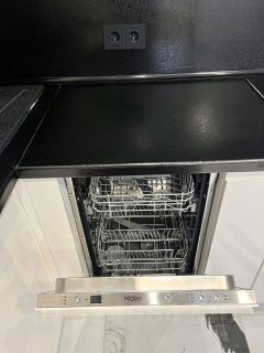 Шкафы все остаются - места для хранения вещей очень много. На кухне остается все, кроме холодильника. Духовой шкаф, микроволновая печь, посудомоечная машина и индукционная плита - все фирмы HAIER для Вас!