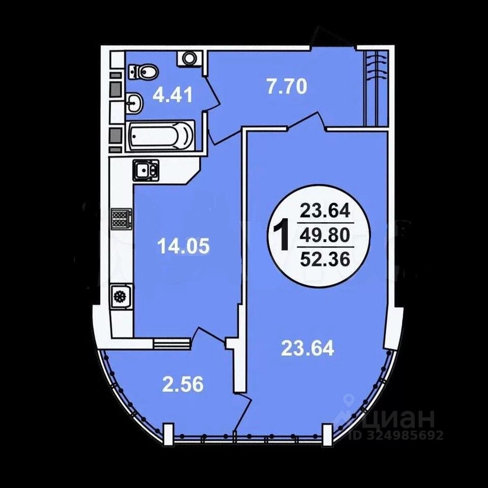 Общая площадь: 53 кв.м.
