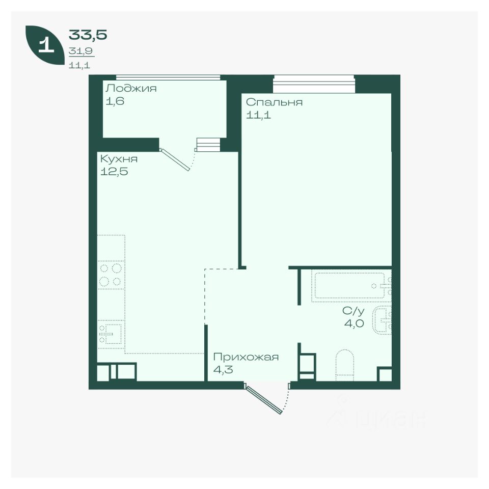 33,5 м²