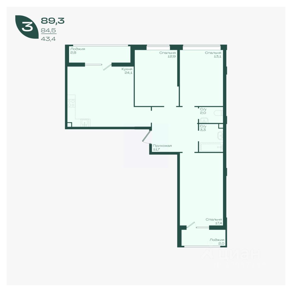 43,4 м²
