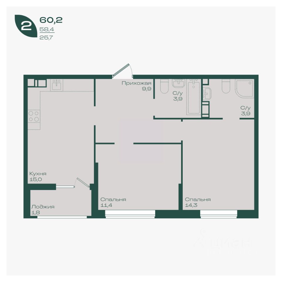 60,2 м²