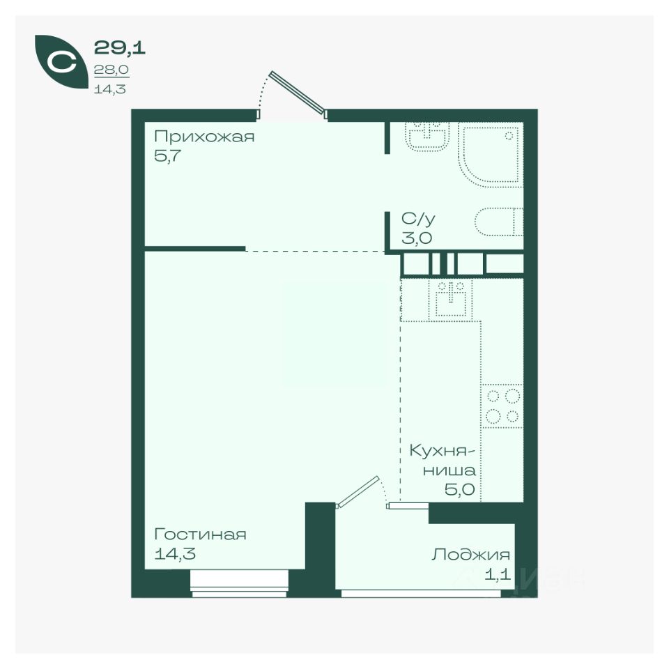 Общая площадь29,1 м²