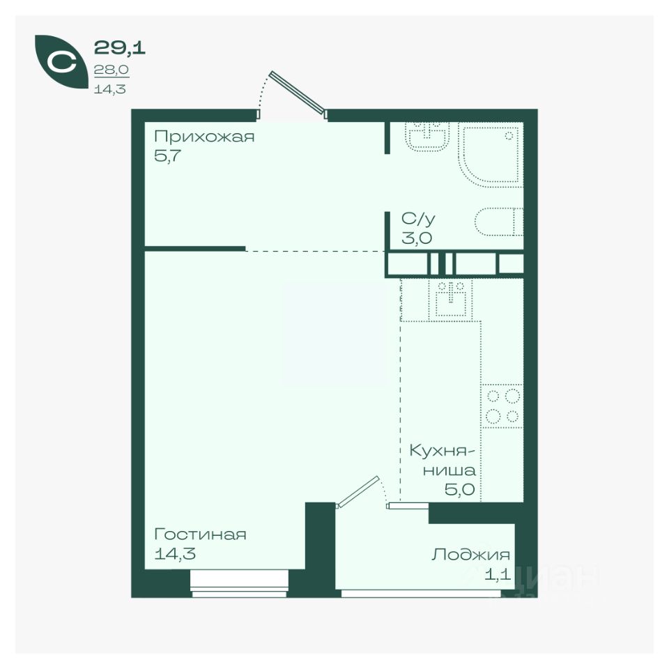 14,3 м²