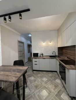 Продается уютная однокомнатная квартира, свежий современный ремонт. Кухня оборудована хорошей техникой, включая 2 кондиционера и водонагреватель. В комнате установлены 2 вместительных шкафа, кровать, а также имеется выход на застекленную лоджию, откуда открывается вид во двор. Санузел совмещенный, оформлен в светлых тонах с качественной сантехникой.