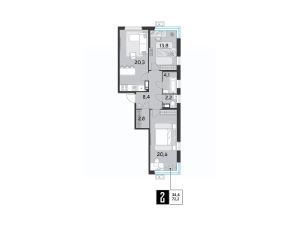 Срок сдачи: 2 кв. 2026, общей площадью 72.2 кв.м., на 15 этаже.