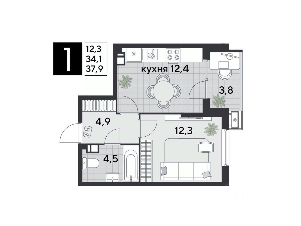 Срок сдачи: 2 кв. 2026, общей площадью 37.9 кв.м., на 4 этаже.