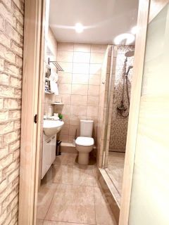 В квартире выполнен качественный ремонт, никто не жил. Установлена хорошая кухня, дорогая мебель, техника все остаётся вам. Санузел совмещен, выполнен в керамограните светлых тонов.