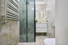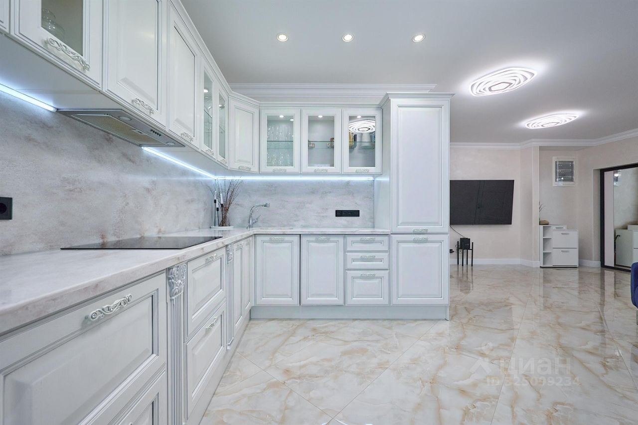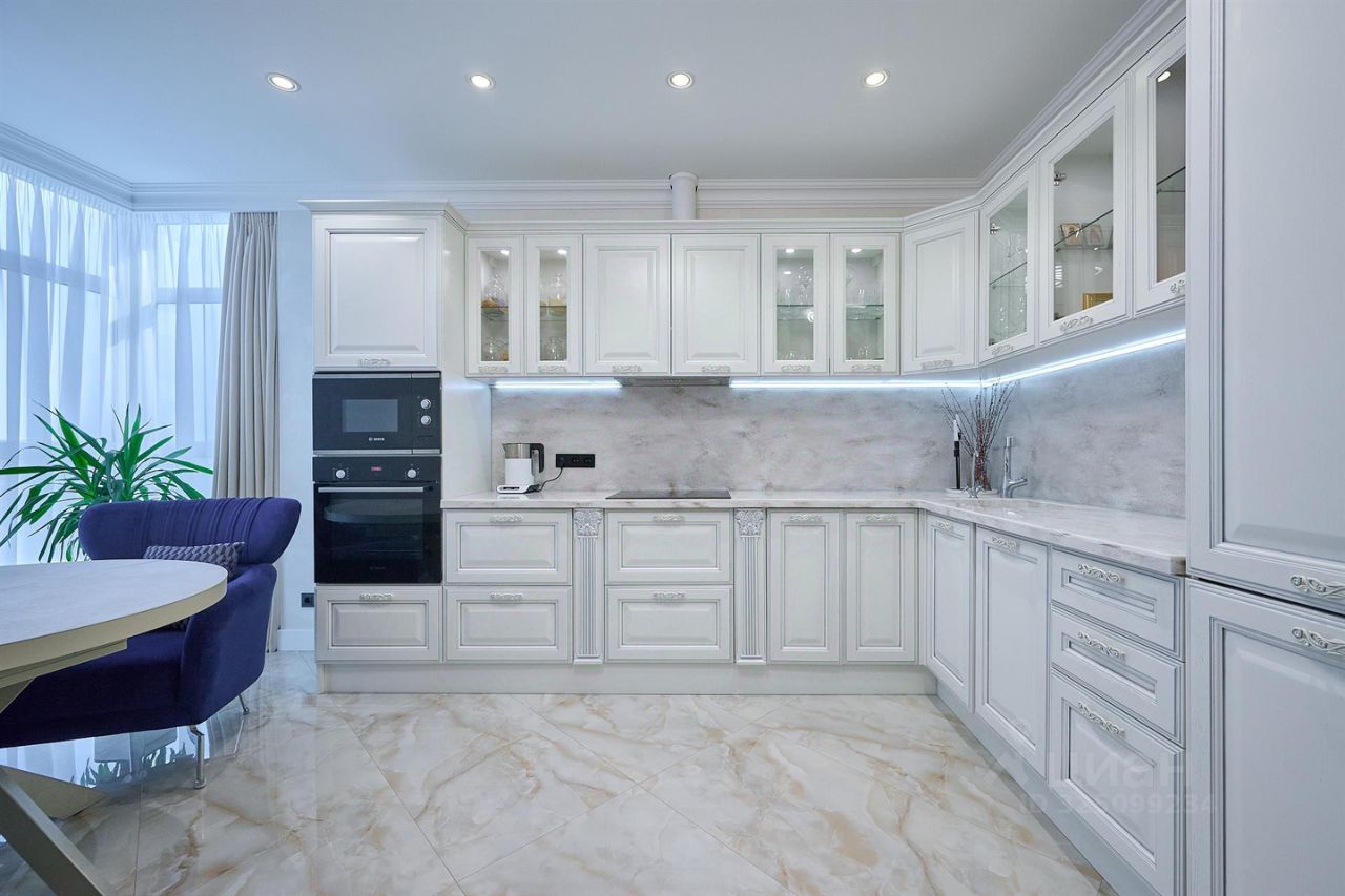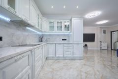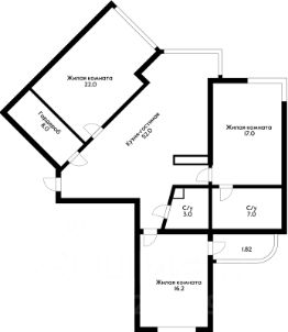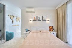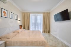 Кухня-гостиная 52 м2, 3 изолированных спальни 22 м2, 16 м2 и мастер-спальня 17 м2. Два отдельных сан.узла и большая гардеробная комната. По всей площади квартиры теплые полы, и шумоизоляция.