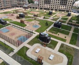 Территория качественно облагорожена, много зелёных насаждений, детские площадки, спортивные тренажёры, места для отдыха для взрослых и детей.