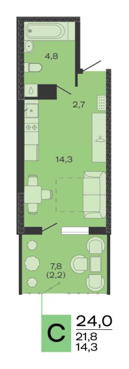 Общая площадь24 м²