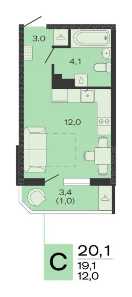 Общая площадь20,1 м²