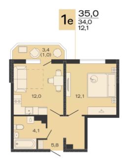 Жилая площадь12,1 м²