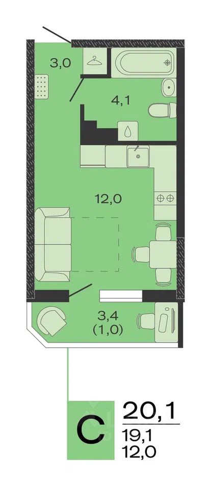 Общая площадь20,1 м²